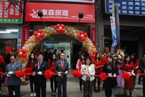 圖/東森旅遊中壢加盟店盛大開幕,剪綵活動熱鬧非凡。