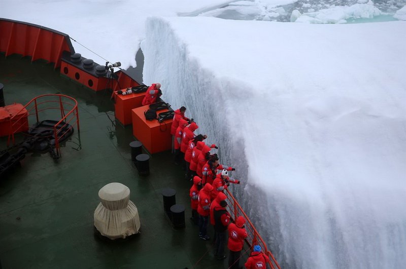 此時遊客們可以四處拍照留念,近距離觀賞破冰船鋼板船頭,與巨大的船錨合影,船公司還會挖出臨時泳池,只要敢穿著泳衣跳入冰冷的海水中,就可獲頒一張「北極冰泳證書」,為正北極90度之旅留下歷史性的見證。