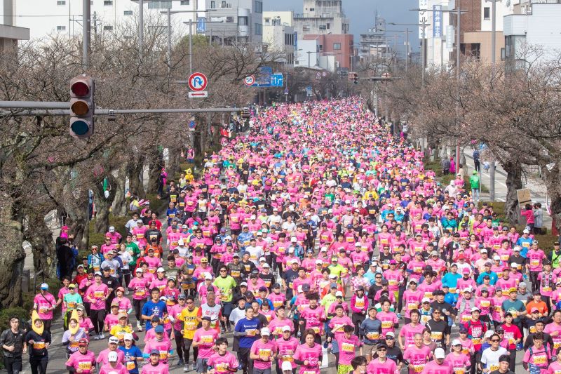 馬拉松賽道穿越福井市區人氣櫻花景點,途經櫻花大道、最美的足羽川沿岸、新九頭龍橋,以及擁有日本現存最古老天守之一的丸岡城。跑者在粉色花海與歷史古城間奔馳,沉浸在春日浪漫,也能感受歷史古城的悠然情懷。