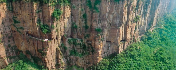 萬仙山遠眺之處是郭亮洞,當初建成是由村內挑選出13名壯漢組成施工隊,耗時五年,用鋼鑿岩石、鐵槌破石壁,蓽路藍縷地靠著雙手和堅強意志,打開郭亮村與外界連通的大道。彷彿一條巨龍般的絕壁長廊,郭亮洞更被美國權威公路專家稱為「世界最奇特的十八條公路之一」。