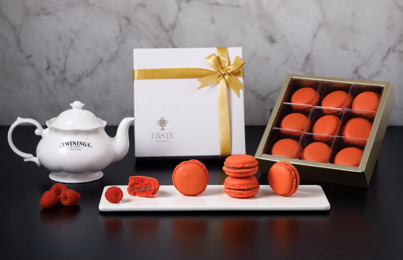 以唐寧系列的胭脂苺果茶製成,並用粉紅色的馬卡龍外殼搭配酸香覆盆子、草莓果泥2種水果和比利時調溫白巧克力並加入唐寧胭脂果茶研製而成、更凸顯雙苺果茶陷的風味,一口咬下酸甜滋味、流連忘返。此茶的特色有果酸味及芬香苺果味,以粉色愛戀來形容是此茶的特色。