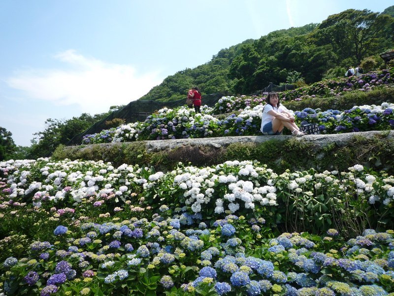 北投竹子湖現已成為眾所皆知的休閒景點,在純白海芋之後接手的正是豔麗的繡球花,多變的色彩包含純白、粉色滾紅邊、粉紅、紫紅、淺藍、藍色…等7~8種品種,在大梯田花卉生態農園內,最特殊的莫過於層層鮮艷美麗的花海,不論是要與繡球花近距離合照,或是延著步道到對面拍下整片梯田花海,都有不同的景致。