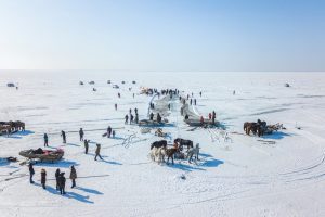 位在吉林省內的「查干湖」是中國六大淡水湖之一,蒙古語意為「白色的湖」,湖中水產豐富,早於遼金時期(約莫西元960年開始)就享有盛名,漁人們至今仍保留蒙古族最古老的捕魚方式,如今更被列為非物質文化遺產,年年吸引眾多旅人甘冒凍人低溫,只為親眼領略查干湖冬捕的千年「奇觀」、出魚時的壯闊景象,以及感受漁人們的熱血拚搏。